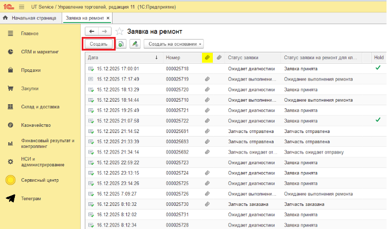 2.Заходим на вкладку “Сервисный центр” и там выбираем “Заявки на ремонт”